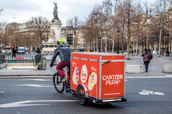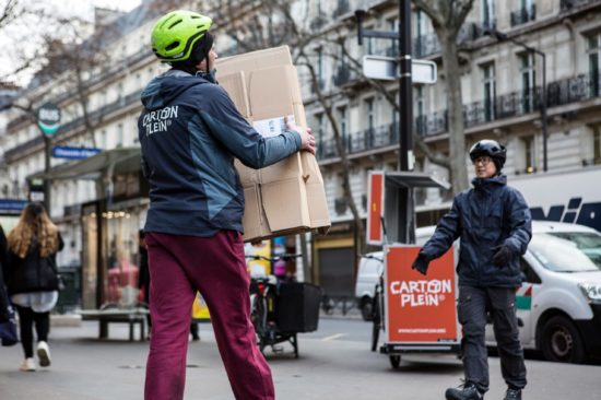 - La collecte de cartons à vélo auprès d’entreprises et de commerçants