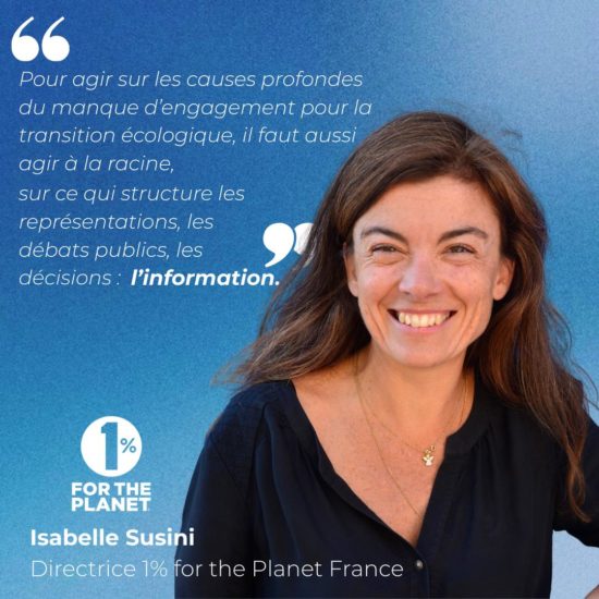 C’est dans ce contexte que 1% for the Planet France annonce une évolution majeure de son périmètre d’action : désormais, le mouvement soutiendra aussi les associations et initiatives œuvrant pour une meilleure représentation des sujets liés à l’environnement, au climat et à la transition dans les médias. Une conviction forte : sans une information fiable, indépendante et fondée sur les faits scientifiques, aucune transition écologique ne peut réussir.